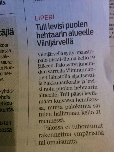 Jenna ja Henna olivat lähdössä maastoon, kun huomasimme että läheltä metsästä nousee savua... mietimme, että joku polttaa roskia... ja niinhän siinä kävi että tytöt ratsastivat maastoon jonne oli syttynyt maastopalo. Hevoset olivat käyttäytyneet rauhallisesti eivätkä juurikaan olleet noteeranneet tulipaloa. Jenna oli soittanut hätäkeskukseen ja kertonut palosta... tämän päivän lehdessä oli asiasta uutinen. Voin vaan olla tyytyväinen ja ylpeä niin hevosista kuin ratsastajista jotka toimivat rauhallisesti kyseisessä tilanteessa. Tyttöjen tultua maastosta pääsin minäkin käymään pienen maastolenkin Jennan toimiessa etumiehenä... Henna oli kävellen mukana ja räpsi samalla aivan ihania kuvia.