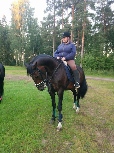 Hevoset ovat olleet kiltista sen enempää riehumatta. Tinka on tosin ruvennut temppuilemaan talliin tultaessa. Eilen äitini ja yksi hevosenhoitajistamme kävivät maastossa, kun he tulivat sieltä äitini ilmoitti, että Reko ontuu aika varmasti. Otimme satulan ja martingaalin pois ja veimme Rekon tarhaan. Juoksutimme Rekoa ja huomasimme, että herra ontuu hieman oikeaa etustaan. Laitoimme siihen linimenttiä.